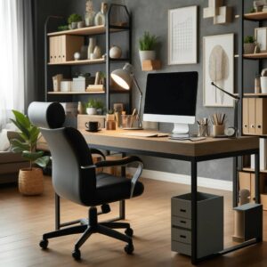 DALL·E 2024-07-13 01.10.52 – A well-organized home office setup featuring a desk with a computer, ergonomic chair, good lighting, and Leave a Comment / By Kay / July 13, 2024